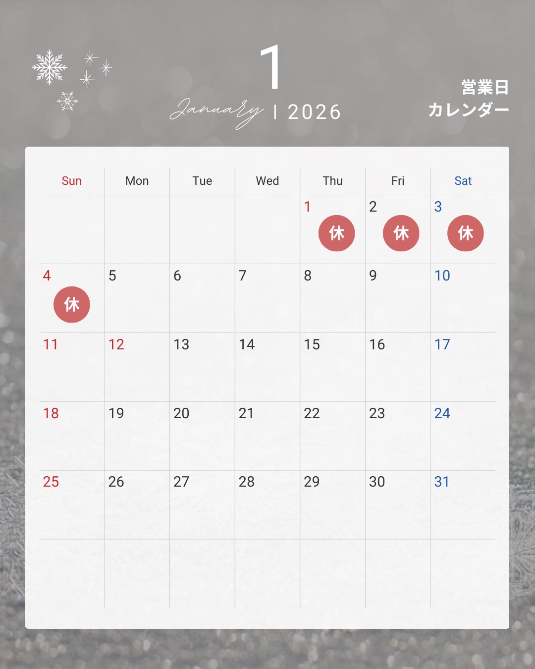 12月と1月のカレンダーになりますので ご確認の上ご予約お願いいたします🗓
